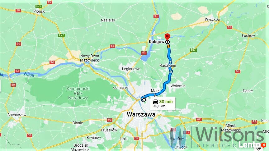 Radzymin - 11 km, Zalew Zegrzyński - 12 km, Warszawa 35 km.