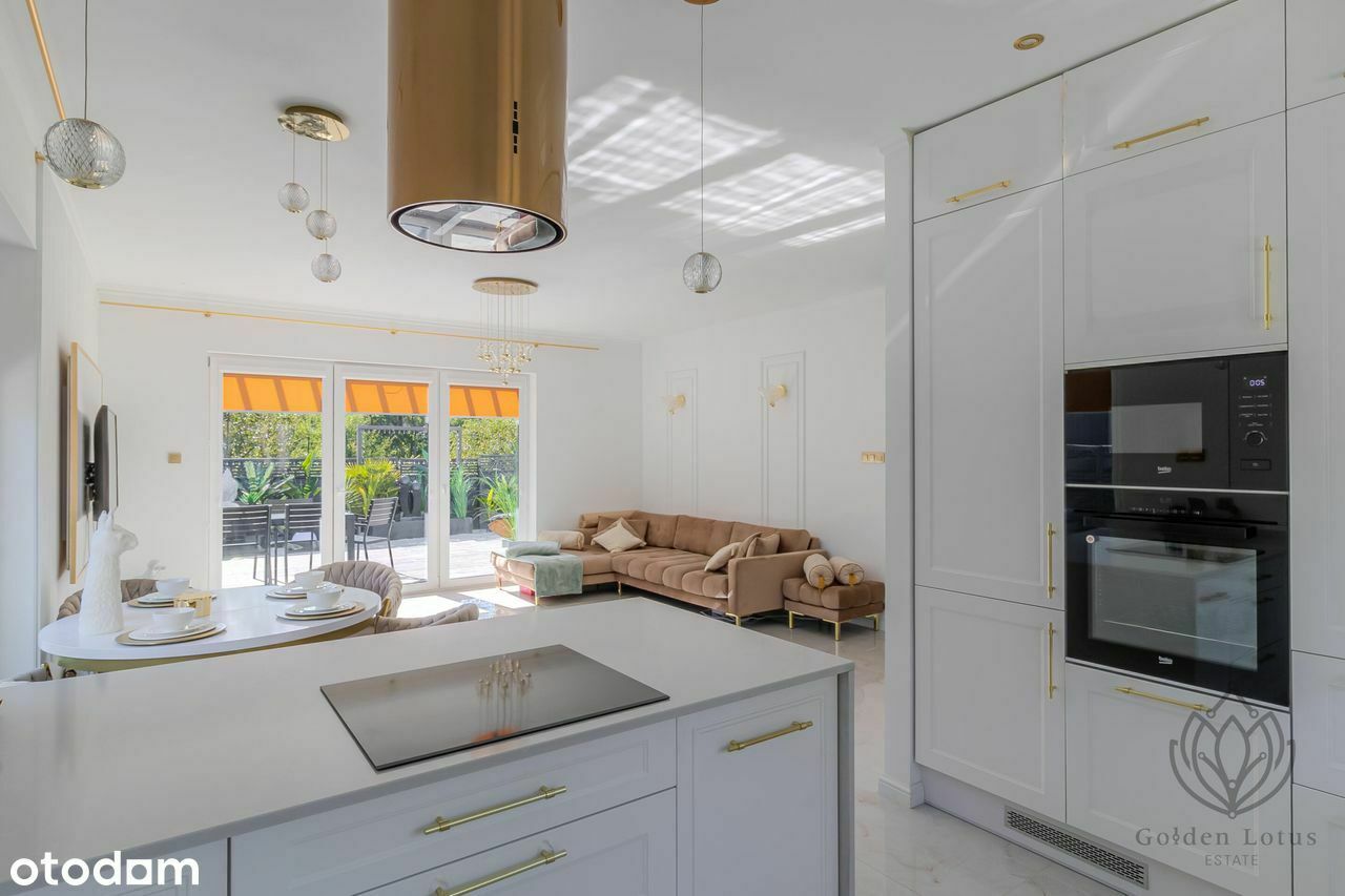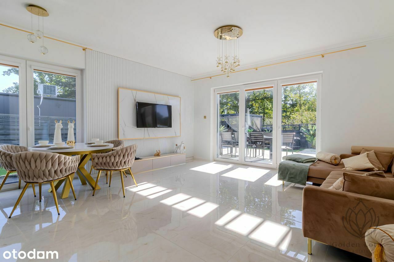 Dom wykończony w 2024 roku z najwyższej jakości materiałów, nietuzinkowy styl z dbałością o detale, wnętrze stworzone ze smakiem i delikatnością stonowanych kolorów, bieli, beżu i złota. Gotowy na Twoje potrzeby bez dodatkowych nakładów.