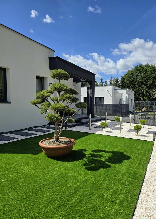 Za drzwiami czeka starannie zaprojektowana przestrzeń prywatności i relaksu oraz zadbany ogród z niepowtarzalną roślinnością